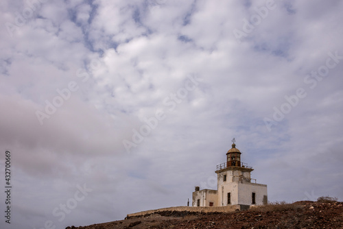 Paisaje con vista del viejo faro de Morro Negro en la isla de Boa Vista en Cabo Verde