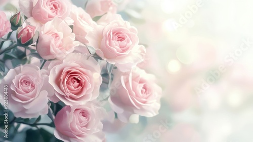 Pale pink and soft gray roses in a vintage fantasy illustration, creating a serene and ethereal spring background
