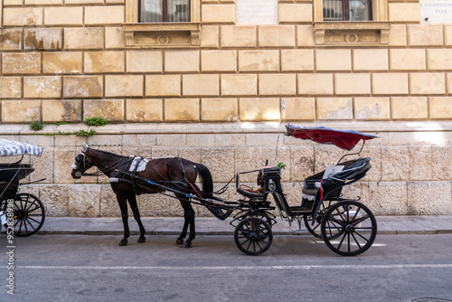 Palermo, Italy - July 20, 2023: A horse-drawn carriage in the historic city center.