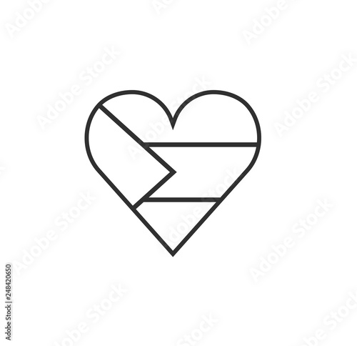 Palestine or Sudan flag icon in a heart shape in black outline flat design. Independence day or National day holiday concept.