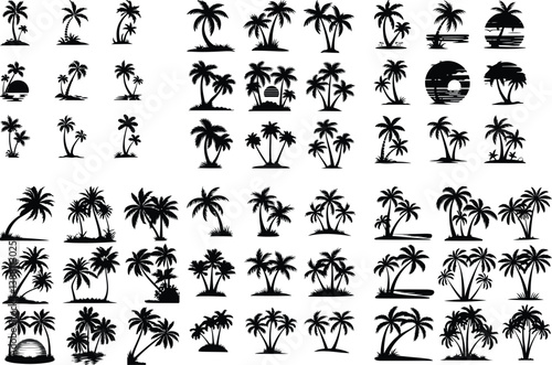 Palm Tree Vector Silhouette | Paradise, Sun, and Nature Design Palm Tree Silhouette Set | Tropical, Beach and Island Vector Icons
