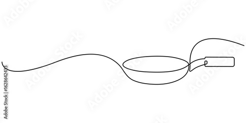 Pan kitchen continuous line drawing. Continuous single line drawing pan kitchen. Kitchen, equipment concept. One line art style vector illustration.