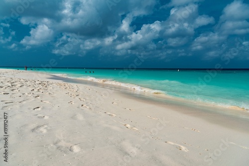 panorama on Eagle beach one of the most beautiful beaches of the Caribbean on the island of Aruba, Netherlands Antilles