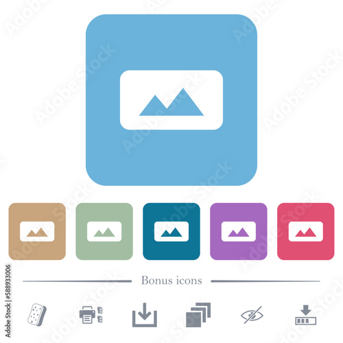 Panorama picture flat icons on color rounded square backgrounds