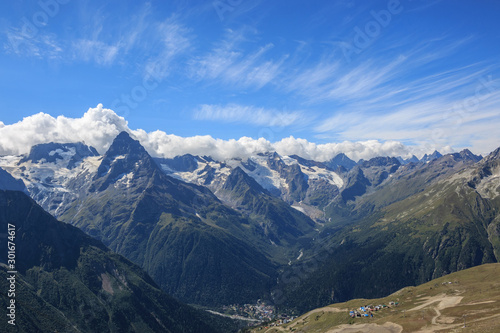 Panorama view of dramatic sky and mountains scene in national park Dombay