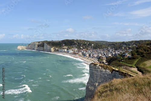 Panoramablick auf die Küste von Etretat