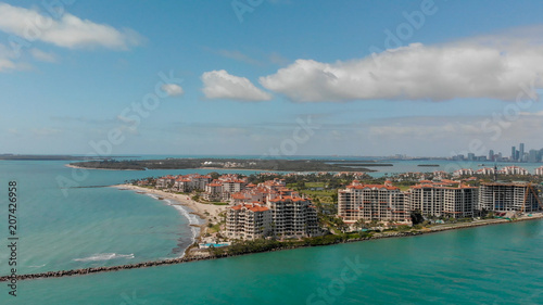 Panoramic aerial view of Miami skyline from South Pointe Pier