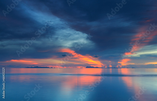 Panoramic dramatic tropical sunset sky and sea at dawn