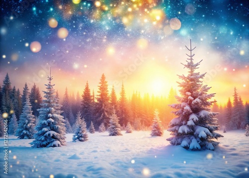 Panoramic Snowy Meadow Christmas Trees Winter Wonderland Landscape