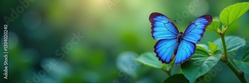 Panoramic view blue butterfly in natural setting, panoramic, butterfly habitat