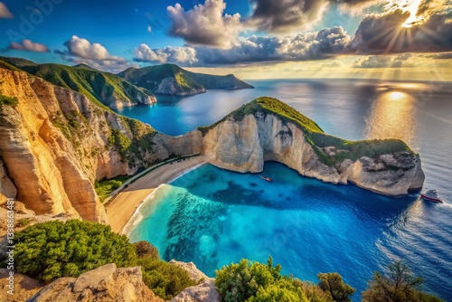Panoramic View of Navagio Beach Shipwreck, Zakynthos, Greece