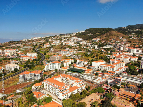 Panoramic view of the city of Canico, Madeira on a sunny day