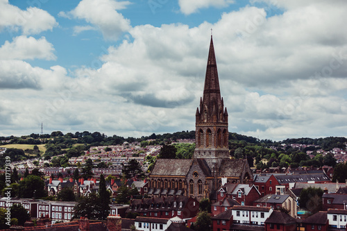 panoramic view of the city with a church steeple in the view in Exeter in the United Kingdom