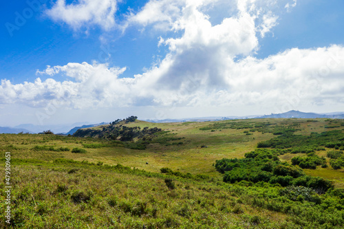 Panoramic View to the Simien Mountains in the Clouds from the Gondar Road, Northern Ethiopia