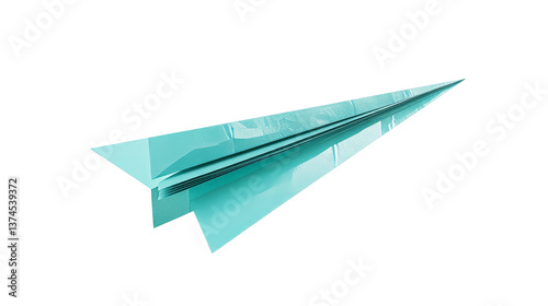 Paper aircraft in turquoise color, origami figure, cut out transparent