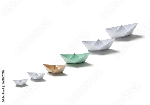 Paper boats arranged in a row, representing growth, progress, and success in a modern context