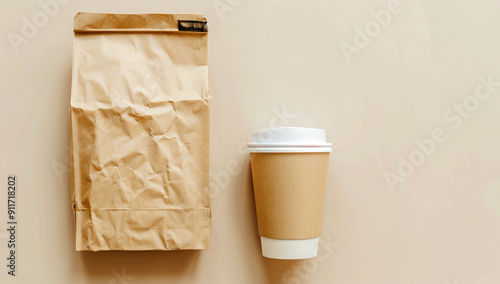 Paper coffee cups and paper wrappers