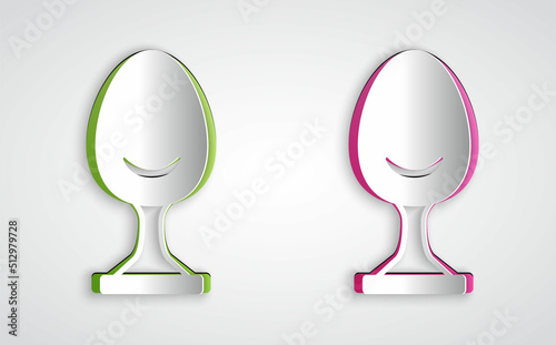 Paper cut Armchair icon isolated on grey background. Paper art style. Vector