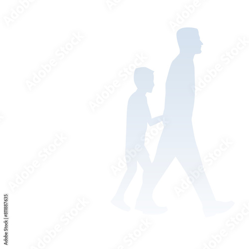 Paper Cut Character of Father and Son Together Walking on Png Background, Father's Day Greeting Card.
