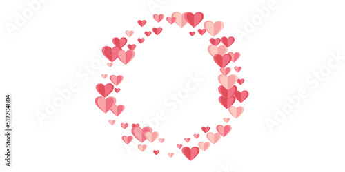 Paper cut red heart shapes explosion background design. Valentine carnival decor. Gift card