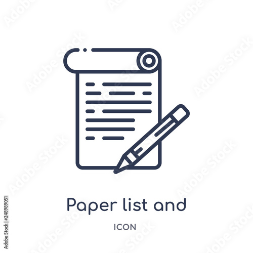paper list and a pencil icon from other outline collection. Thin line paper list and a pencil icon isolated on white background.