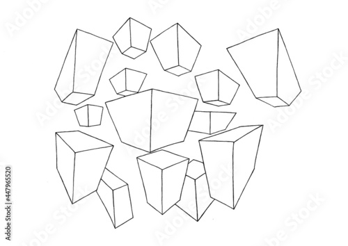 parallelepiped doodle shape illustration perspective line faces.