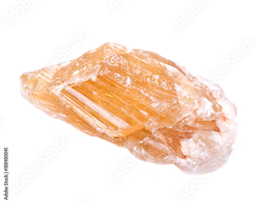 Partially crystallized golden Scapolite from Nigeria isolated on white background