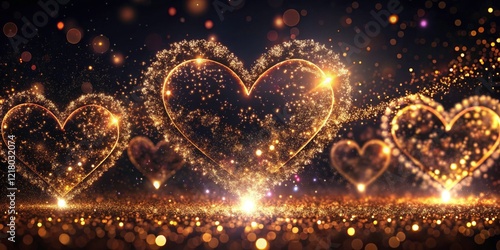 Particle Glitter Glow Heart Background Loop - Beautiful Low Light Photography with Sparkling Particles and Heart Shapes for Romantic and Celebratory Themes