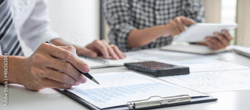 Partner meetings and briefing, Teamwork of business colleagues consultation and conference new strategy business plan working analyzing start up and investment project to development grow to success