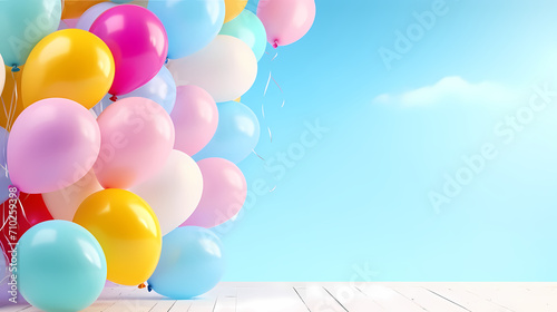 Party balloons, birthday decoration background, anniversary, wedding, holiday with space for text