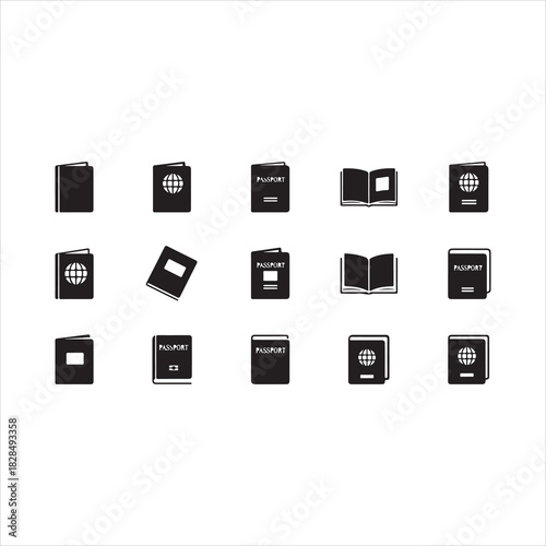 Passport Book Icon Set – Minimal Vector Travel Document Silhouette Symbols