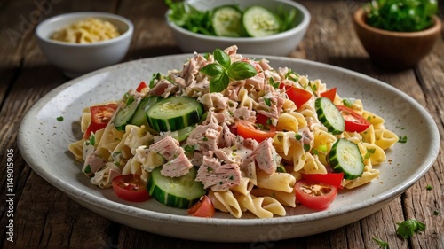 Pasta Salad with Tuna, Vegetables, and Creamy Yogurt Dressing