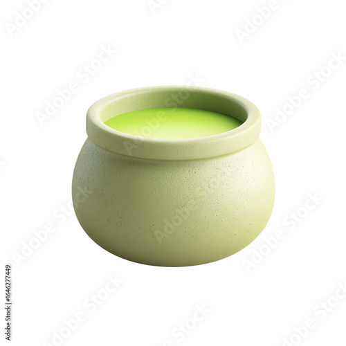 Pastel ceramic pot with green liquid, rounded rim, 3D render — white isolated background