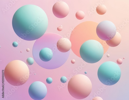Pastel Color Abstract Background with Floating Spheres and Bubbles