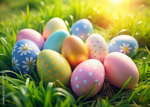 Pastel Easter Eggs in Grass - Spring Holiday Decoration