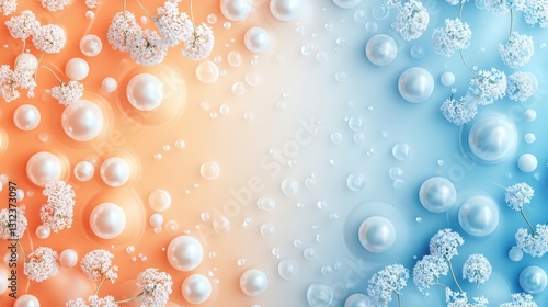 Pastel Gradient Background with 3D Geometric Elements and Pearls in Soft Colors