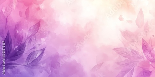 Pastel Lavender, Gold Watercolor Background, Stylized Herbs, Whimsical Leaves, Soft Focus Effect