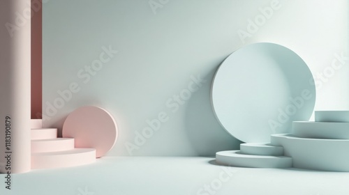 Pastel Minimalist Abstract Shapes Composition with Steps and Platforms