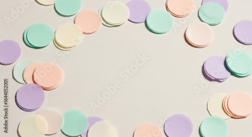 Pastel paper confetti forming a frame on a beige background