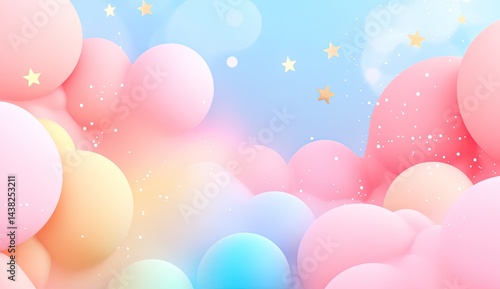 Pastel spheres, stars, dreamy, soft background