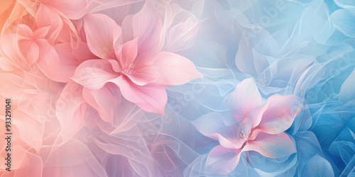 Pastel-colored flowers blend seamlessly with soft flowing shapes in a calming abstract composition