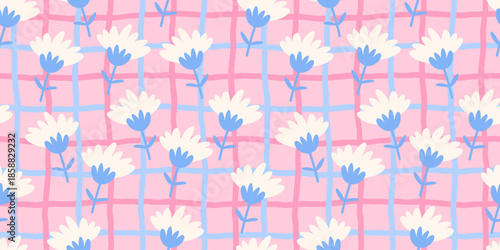 Pastel-colored wildflowers and daisies in a seamless vector pattern, ideal for children s apparel, home decor, and soft, natural fabric designs