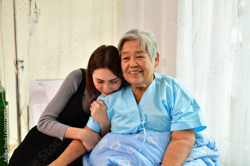 Patient Concept, Grandma's in the hospital, Waiting for someone to visit.