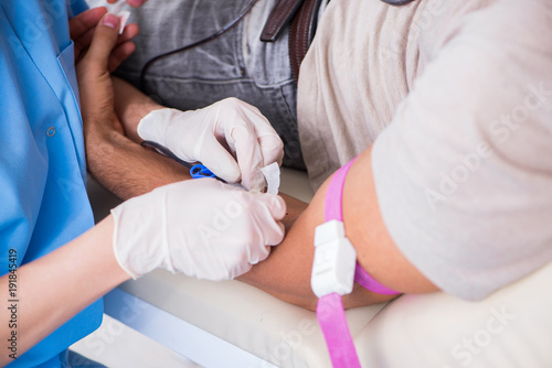 Patient getting blood transfusion in hospital clinic