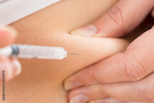 Patient Making Insulin Shot By Use Of Syringe