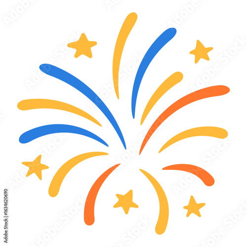 Patriotic firework in red blue yellow with scattered stars isolated