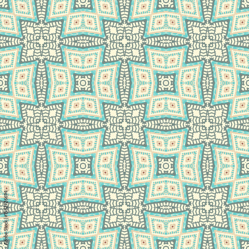 Patrón sin costuras Original. Colores pastel. Formas. Estampa. Textura. Fondo. Caleidoscopio. Simétrico. Infinito