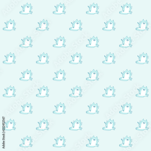 Pattern based of a kawaii illustration of a happy chubby kawaii cat made of ice enjoying his own melting. Sad and cute at the same time! Summer is almost over. But it’s still very hot .