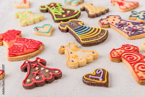 Pattern of traditional handmade smiling biscuits gingerbread men cookies