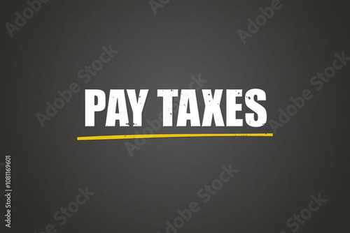 Pay Taxes. A blackboard with white text. Illustration with grunge text style.